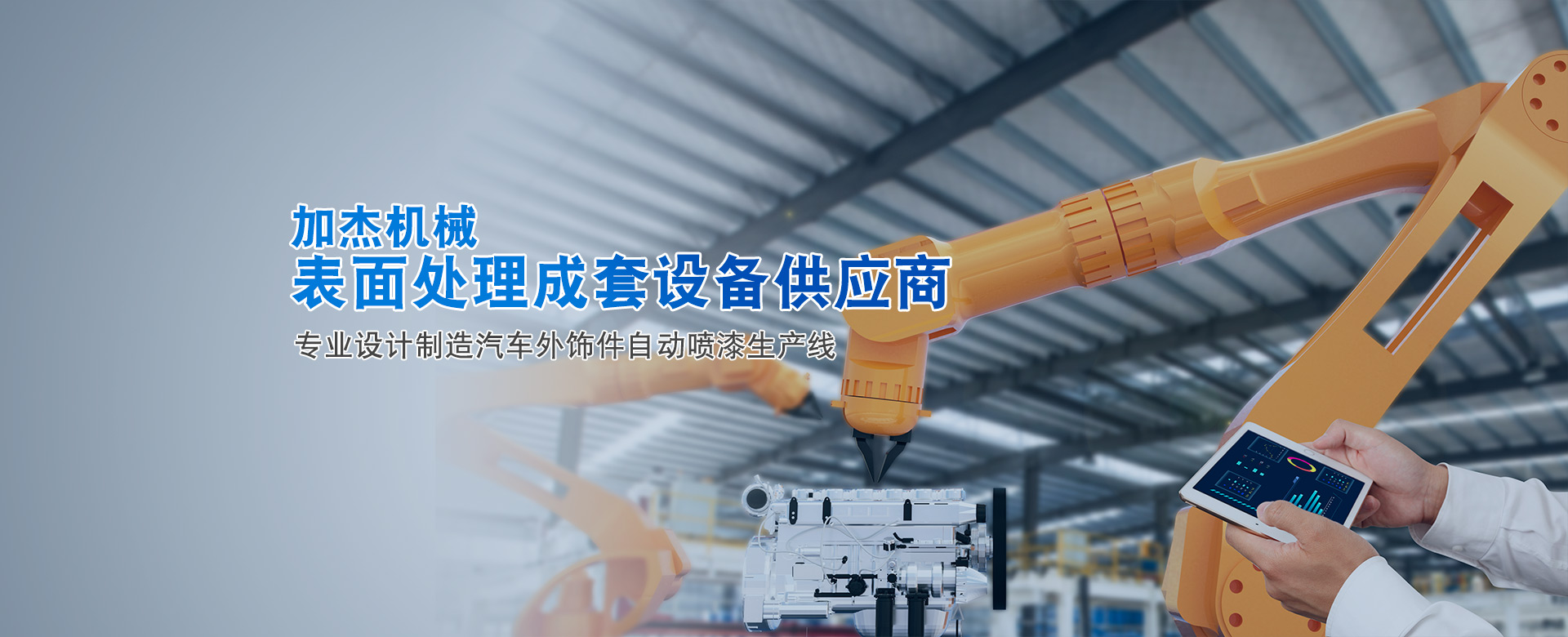 加杰智能裝備(廣東)有限公司是廣州市加杰機械設備有限公司的全資子公司,加杰成立于2007年。是一家專業(yè)于表面處理行業(yè)智能化涂裝設備的研發(fā)、設計、制造、安裝與售后為一體的綜合型企業(yè),專業(yè)于塑膠、金屬部件的噴漆、電泳、噴粉等成套自動涂裝線交鑰匙工程。 公司在廣州花都和廣清產(chǎn)業(yè)園均有自建研發(fā)及生產(chǎn)基地,占地面積六萬余㎡,旗下有加杰智能、川捷智能、漢潔科技、泰國加杰四家子公司。公司同華南理工、廣工、北理工等知名大學院校展開深度合作,并積極展開自主創(chuàng)新和...